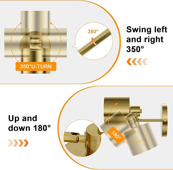 - 【Adjustable Angle for Optimal Lighting】Both the lamp arm and head of this battery-powered wall lamp are designed with adjustable functions.This allows you to freely adjust the lighting angle to your preference. The lamp can be adjusted 180°vertically and swings 350°horizontally,satisfying all your lighting needs.