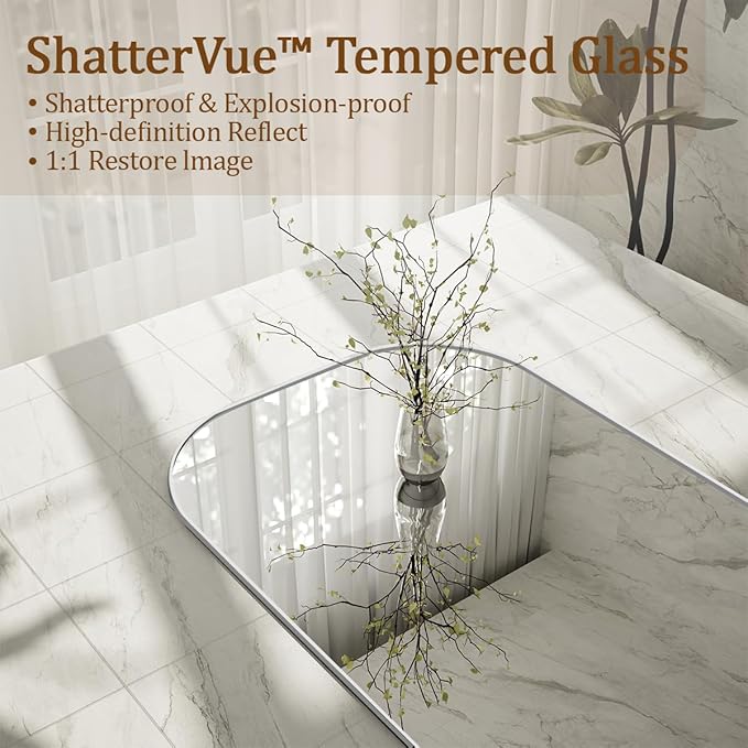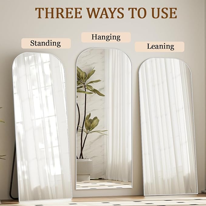 - DESIGN: The top of the floor mirror is designed with rounded corners, the whole territory is surrounded by aluminum alloy, the texture is slim, you can easily move the whole mirror, the surface is treated with anti-rust, durable and not fading, and the back of the mirror is made of explosion-proof film, which protects you and your family from harm