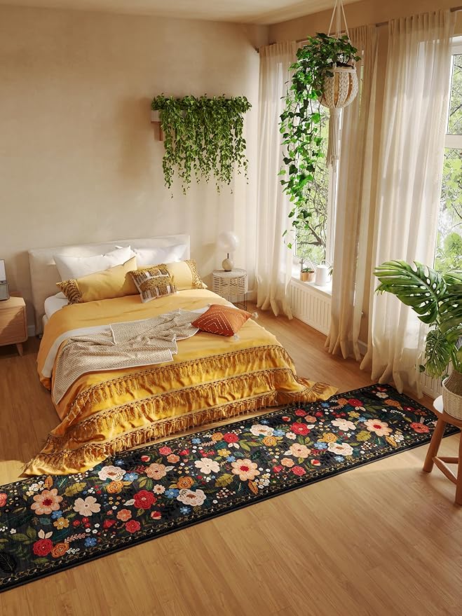 Rugcomf Runners for Hallways Kitchen Rug Non Slip 2'x 10' Long Washable Runner Rugs with Rubber Backing Soft Floral Carpet Runner for Hallways, Kitchen, Laundry, Bedroom, Bathroom(Black)