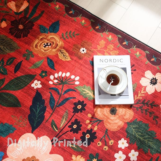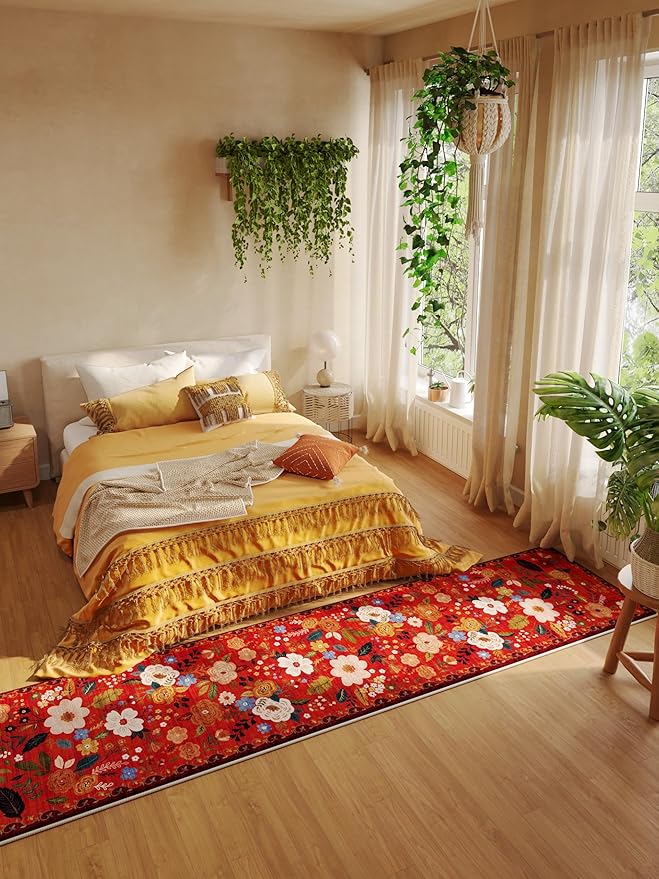 Rugcomf Runners for Hallways Kitchen Runner Rug Non Slip 2'x 10' Long Washable Rugs with Rubber Backing Soft Floral Carpet Runner for Hallways, Kitchen, Laundry, Bedroom, Bathroom(Red)