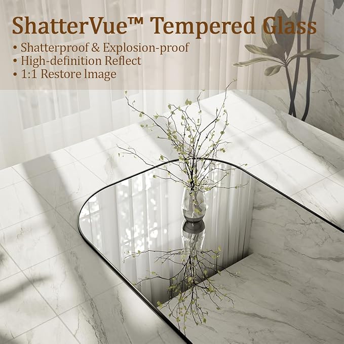 - DESIGN: The top of the floor mirror is designed with rounded corners, the whole territory is surrounded by aluminum alloy, the texture is slim, you can easily move the whole mirror, the surface is treated with anti-rust, durable and not fading, and the back of the mirror is made of explosion-proof film, which protects you and your family from harm