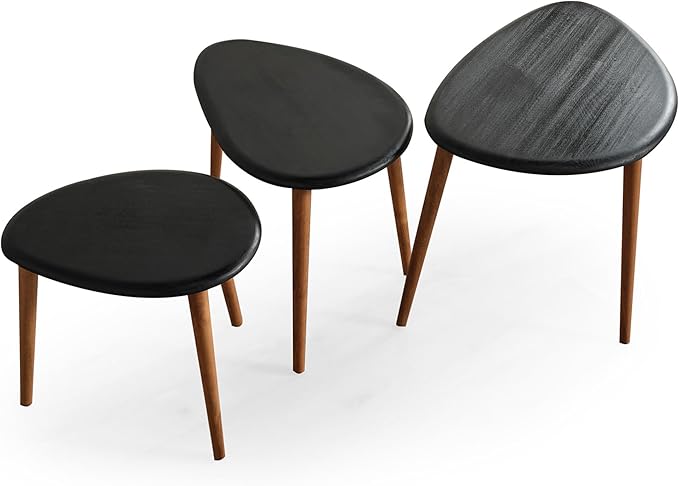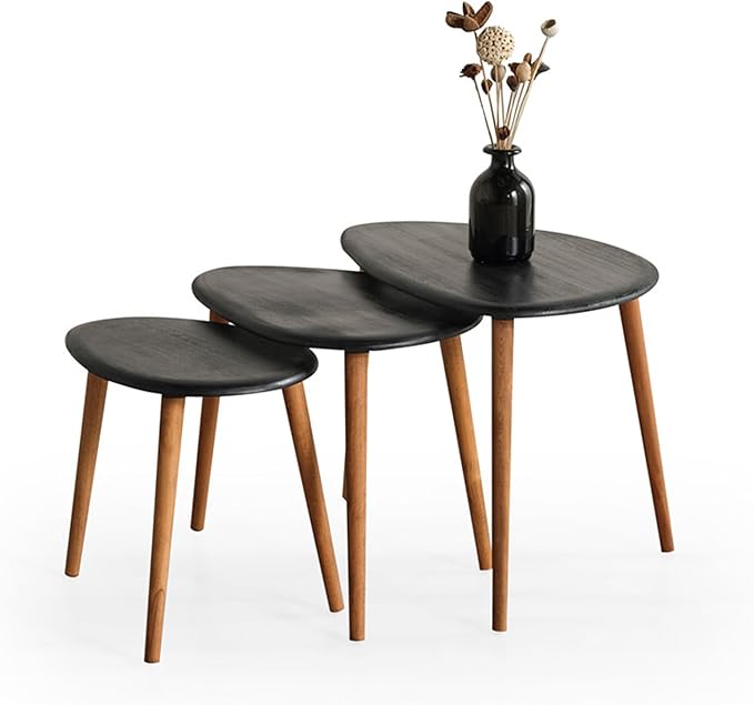 - Retro-inspired Nesting Set: Transform your living space with a set of 3 solid wood nesting coffee tables featuring a distinct mid-century modern design. Embrace the retro charm that these pebble-shaped tables bring to your home decor.