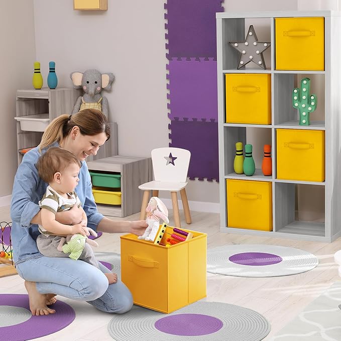 Sorbus Foldable Storage Cubes - 6 Fabric Baskets for Organizing Pantry, Shelf, Toy Box, Cubby, Closet Organizer - 11 Inch Collapsible Closet Organizers and Storage Bins (Dark Yellow 6 Pack)