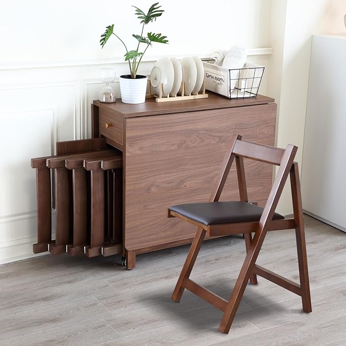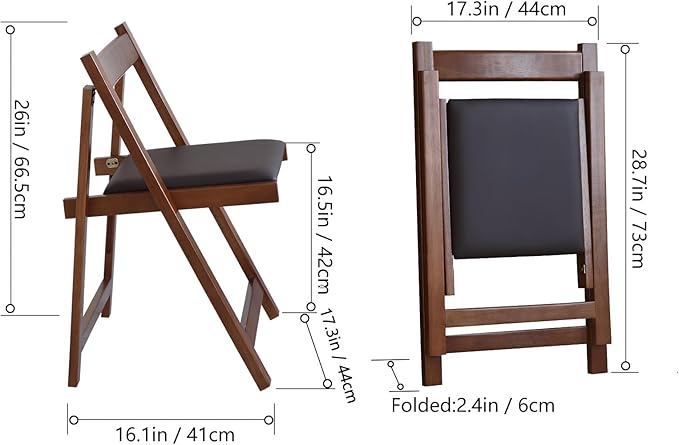 - Product Dimensions: Overall Dimensions: 16.5"D x 17.3"W x 26"H| Seat Height: 16.5" | Folded Dimensions: 2.2"D x 17.3"W x 28.7"H | Color:Walnut; The size is smaller than the regular chairs, it's mainly to match the foldable dining table, before order, please check the size at first, thank you.