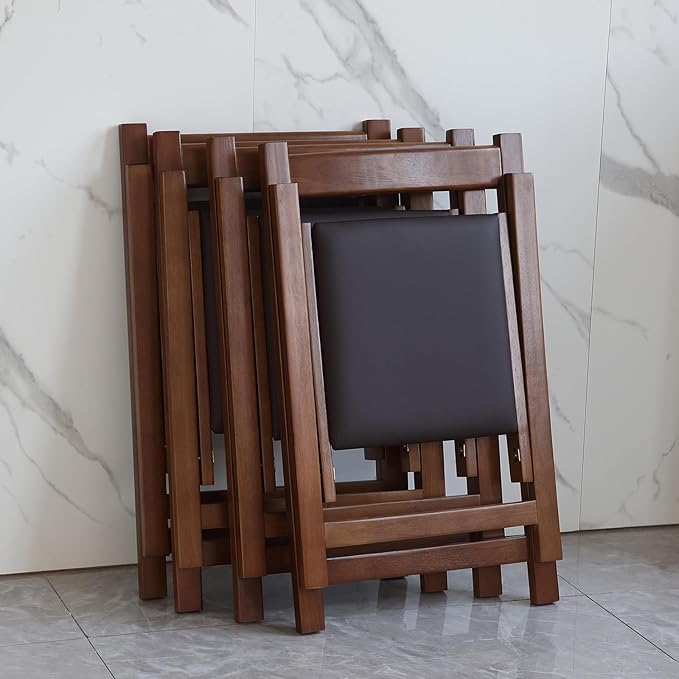 - Qualified material & Comfortable: Uphold exquisite design, superb technology and made of qualified natural wood and microfiber leather, the seat is soft pad, the wooden folding chairs is safe and reliable, enduring extreme weather after exquisite craftsmanship. The edges are polished by hand, round and smooth, preventing butt cheeks are sore even sitting for long.The ergonomic design of the backrest could support your back well, giving you seating with relaxation.