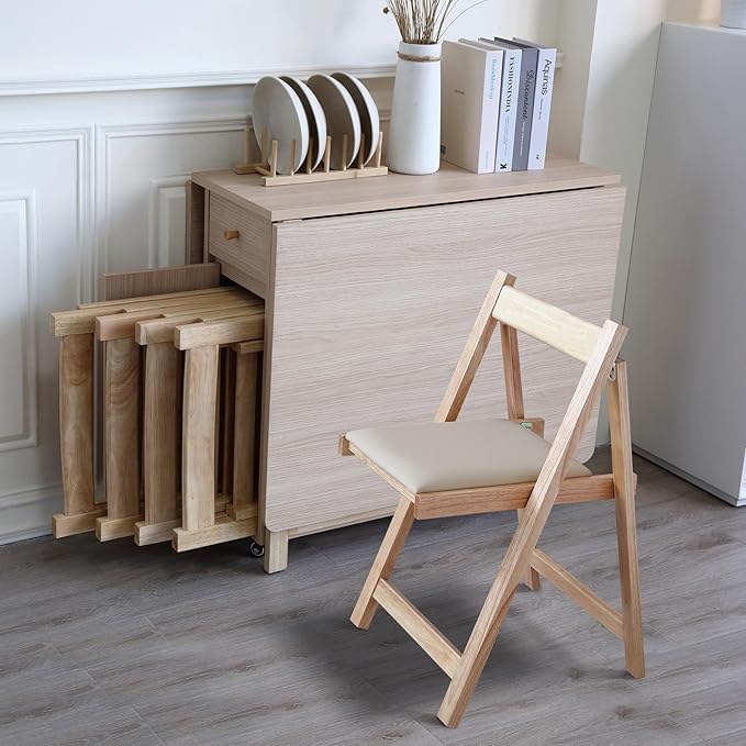 - Product Dimensions: Overall Dimensions: 16.5"D x 17.3"W x 26"H| Seat Height: 16.5" | Folded Dimensions: 2.2"D x 17.3"W x 28.7"H | Color:Wood; The size is smaller than the regular chairs, it's mainly to match the foldable dining table, before order, please check the size at first, thank you.