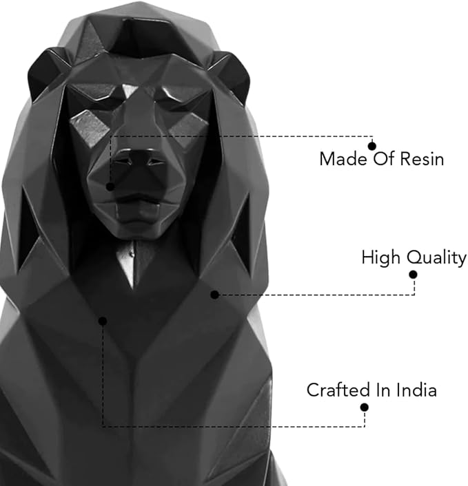 Black Lion Statue for Home Decor Geometric Style Sitting Black Lion Figurine Home Decorative Showpiece, Lion Idol for Office Decoration, Handmade Animal Statue Resin, Size 7.67 inch