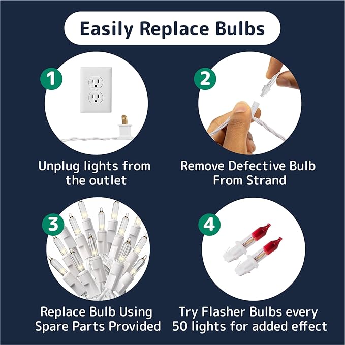 - Add Twinkle Magic: Insert the red-coated flasher bulb to transform your display with a twinkling effect; ideal for enhancing the charm of warm white twinkle lights for Christmas tree displays outdoors