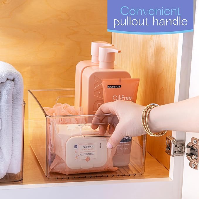 Plastic Food Storage Clear Container Bin with Handles for Organizing Kitchen, Pantry, Refrigerator, Freezer, Pantry, Cabinet, Closet, Bathroom 10”x8”x5”
