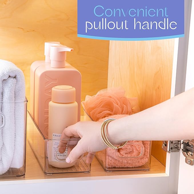 - Easy Visibility and Convenient Handles: The clear plastic design allows you to quickly see and access your stored items without any hassle. Built in grip handles provide a secure and comfortable hold, making it easy to pull out the bin and grab what you need. The open top design adds conveniece, perfect for busy families, organizers and anyone looking to organize their space.