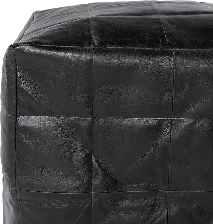 - 【PRODUCT SPECIFICATIONS】Colors: Black | Dimensions: 18"H x 18"W x 18"D | Style: Rustic | Shape: Cube | Construction: Leather