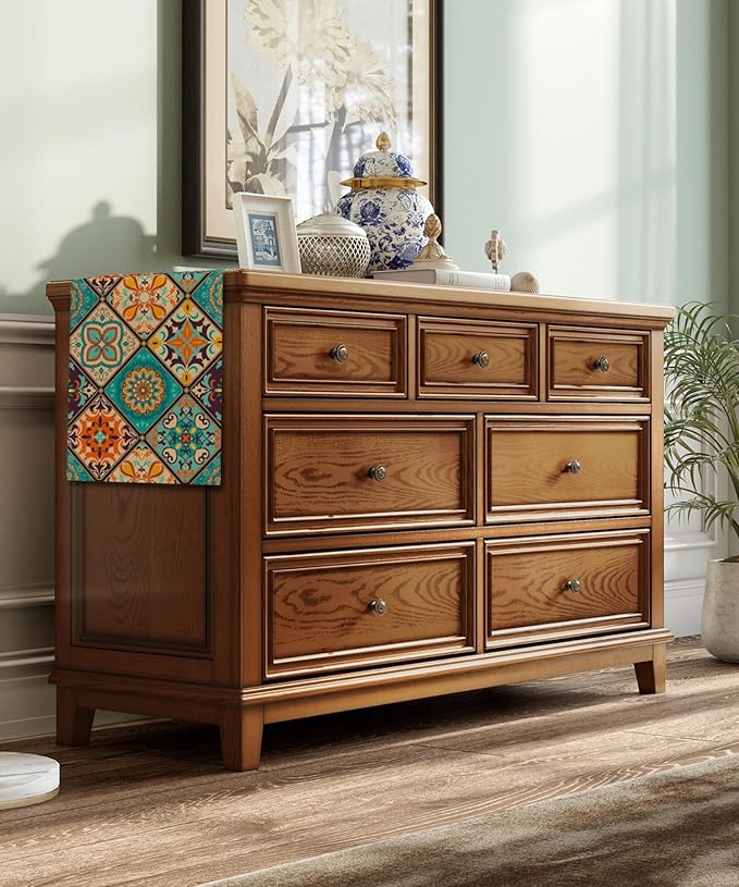 Boho Bohemian Table Runner 90 Inches Long, Vintage Seasonal Table Runners for Party Kitchen Dining Coffee Table Bedroom Dressers Indoor Outdoor, Machine Washable (Bohemian B, 13” x 90”)