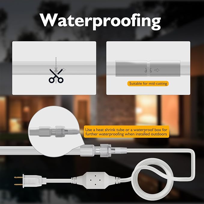 - Indoor&outdoor:When installed indoors, care should be taken to avoid excessive bending and stretching of the light strip, so as not to damage the wire and light source. Because the outdoor environment is more complex and the weather changes greatly, special attention needs to be paid to waterproof operation. If the installation location cannot guarantee waterproof, it needs to be treated with waterproof materials. Please use hot water sleeve or waterproof box for further waterproof