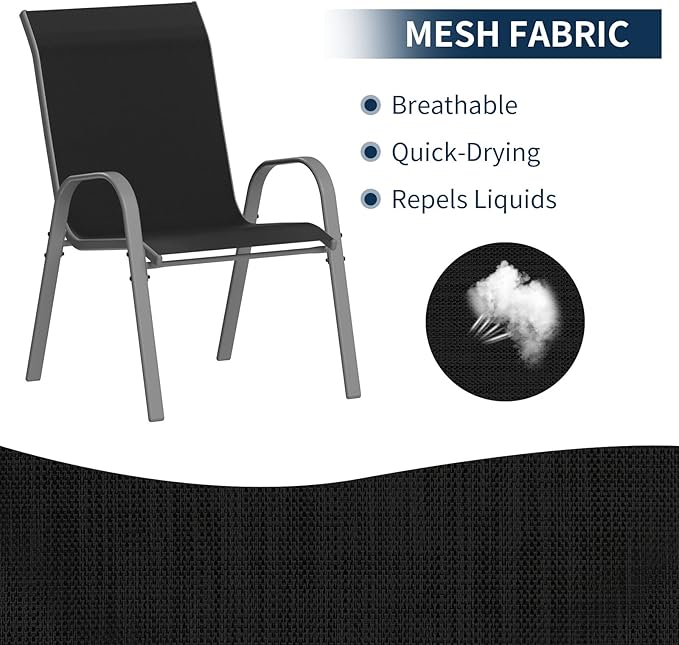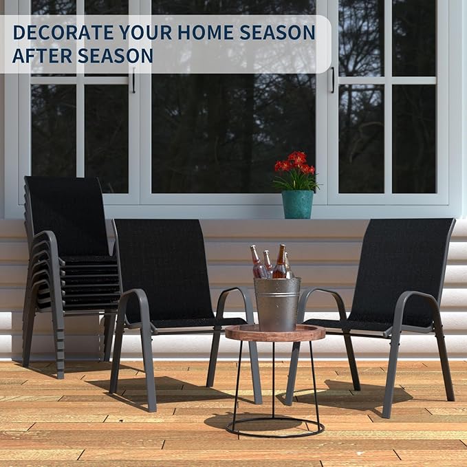 Amopatio Patio Chairs Set of 8, Outdoor Stackable Dining Chairs for All Weather, Breathable Garden Outdoor Furnitures for Backyard Deck, Black