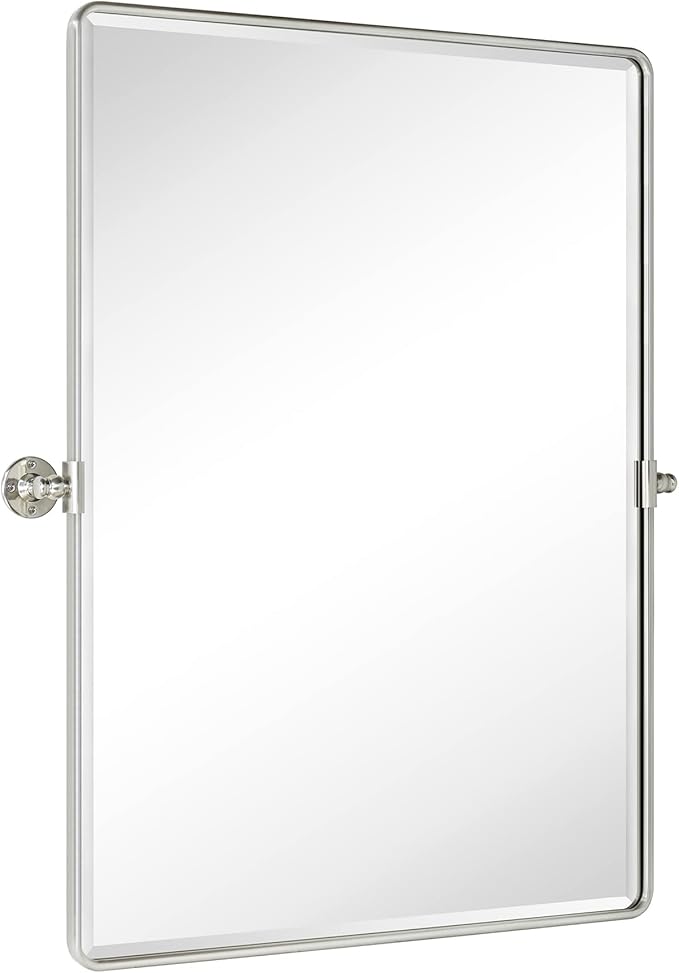 - Practical yet Beautiful Design: One of our best-selling rectangle pivot vintage bathroom mirror collection! Framed in premium metal for unrivaeld strength. Tilting up or down to adjust viewing angle for either standing or seated mirror use. Also this pivoting mirror is coming with an elegant and generous 3/4'' bevel. An easy fit in your bathroom aesthetics no matter it's Chic Modern or Rustic Farmhouse.