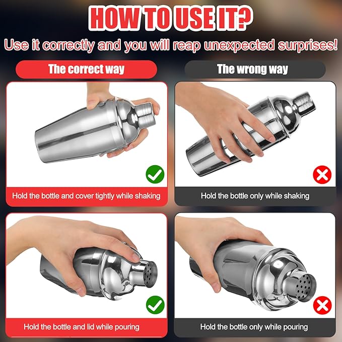 - Ideal for Beginners: the drink shaker is suitable for beginners looking to explore the process of cocktail making; It offers an insulation design keeping the ice intact and allows you to enjoy a refreshing cold drink for hours, showing the process of adding ingredients into your shaker and ensures an effortless, smooth flow when pouring your cocktail, ensuring that you can enjoy the process of crafting your cocktails