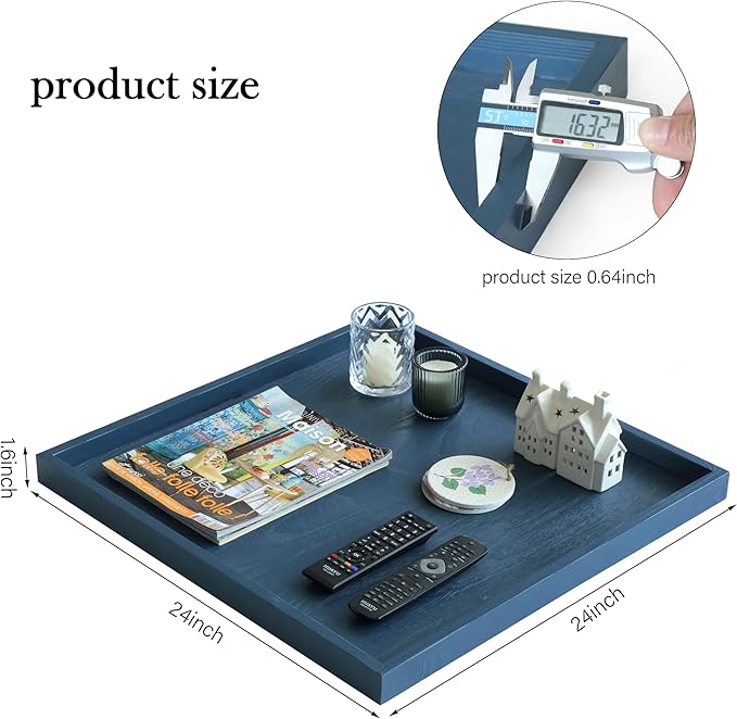 - π· KING SIZE OTTOMAN TRAY - the dimension is 24 x 24 x 1.6 inches. Perfect size for as serving tray, decorative tray, ottoman tray and coffee table alternative to hold drinks, snacks, books, or decor items; serve as a convenient serving area, use it to hold appetizers, drinks, or even a small buffet setup.