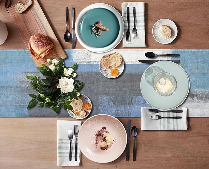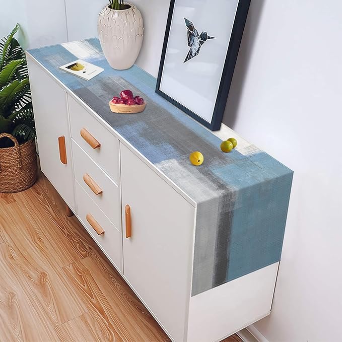 Emvency Farmhouse Table Runner, Vintage Grey Blue Abstract Art Painting for Kitchen Coffee Table Family Dinners Holiday Parties Wedding Events Decor(13x72 inch)
