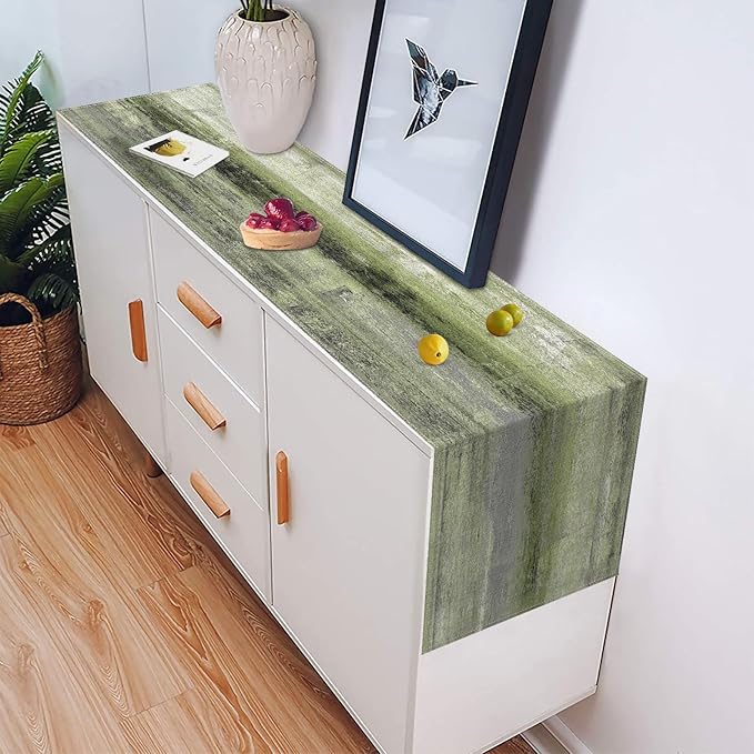 Emvency Farmhouse Table Runner, Vintage Olive Green and Grey Abstract Art Painting for Kitchen Coffee Table Family Dinners Holiday Parties Wedding Events Decor(13x72 inch)