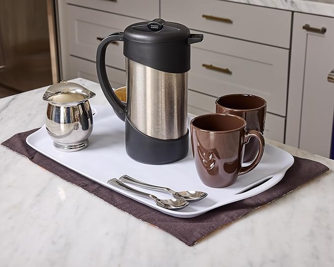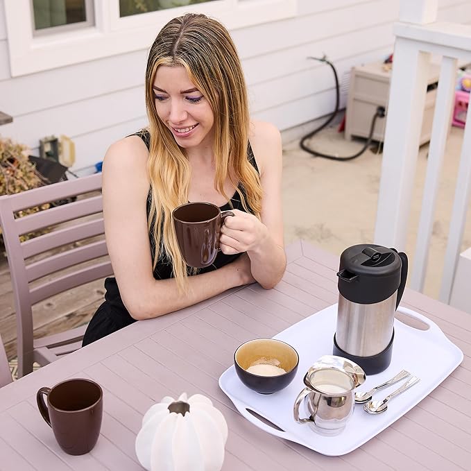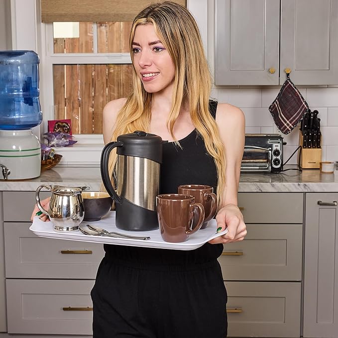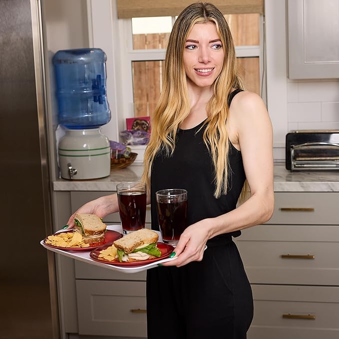 - LIGHTWEIGHT: This plastic serving tray with handles is made of BPA-free melamine, which is much lighter than ceramic trays, making it easy to carry and perfect for everyday use.