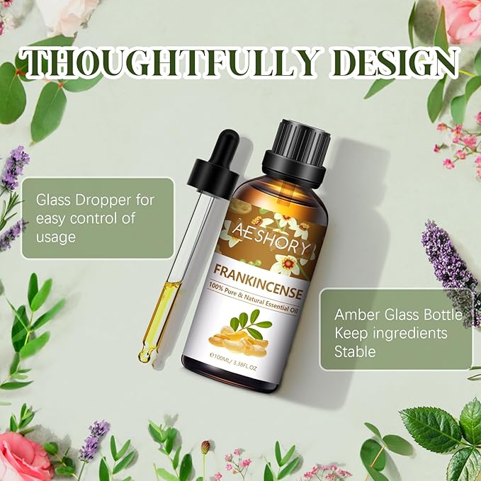 - 【3.38FL.OZ Frankincense Essential Oils】Natural Frankincense oil undiluted, no additives, no fillers. Amber Glass Bottle with Premium Glass Dropper, keeps our essential oils from sunlight, and the dropper is convenient and easy for you to blend with other essential oils or carriers without any waste.