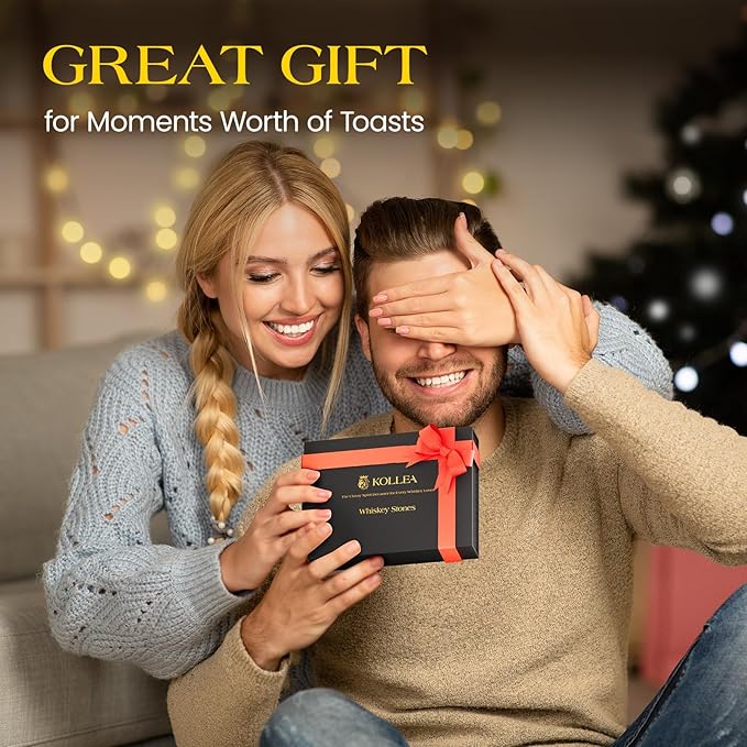 - Kollea Whiskey Stones Set: Kollea whiskey stones set is a premium quality whiskey stone set that comes in a 8 pieces of Multicolor stainless steel cubes, a silicone top tongs along with an elegant gift box