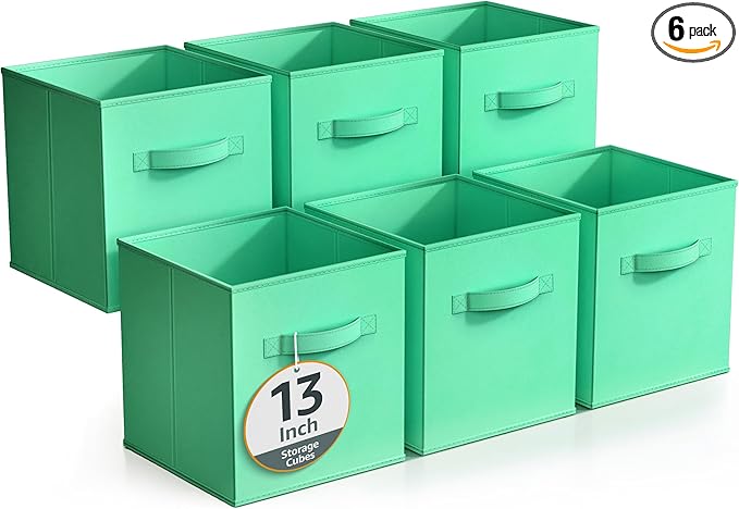 Sorbus Fabric Storage Cubes - 6 Foldable Storage Bins for Organizing Pantry, Cubbies, Toy Box - Clothes Storage & Closet Organizer - 13 Inch Collapsible Cube Baskets for Shelves with Handle