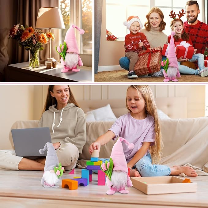 - 🎁【Unique Design&Heartwarming Gift】Pink Plush Gnome Dolls holding tulips and wear long hats will be the hit of your every occasion. They seem to say wish you happy and lucky. Bring a special gift for holiday with this adorable gnome plush decoration, the perfect choice to express infinite love for your mom or lovers.A warm gift to wife, mom,grandma, girlfriend, teacher or people who collect gnomes, and bring them good luck, love and warm.