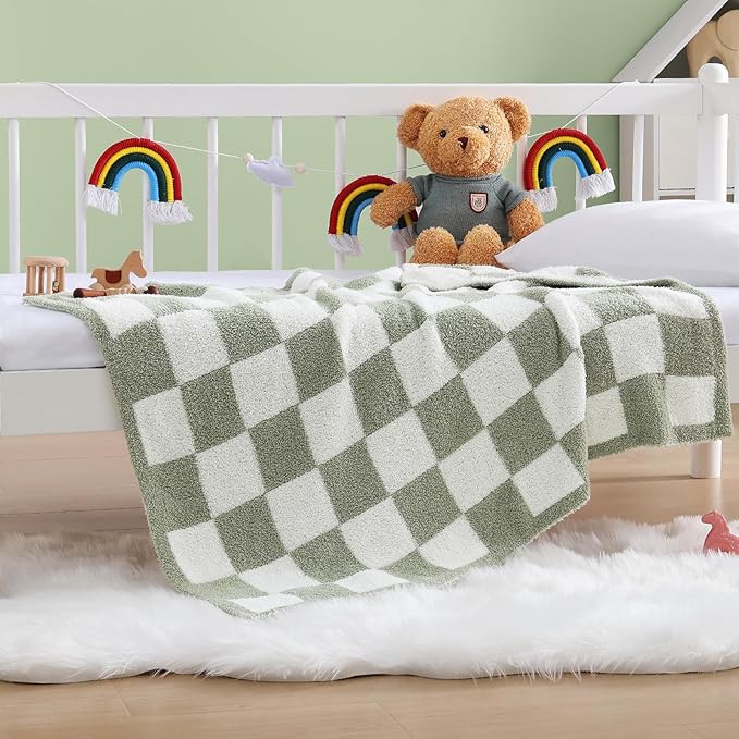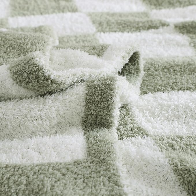 WRENSONGE Checkered Throw Blanket, Sage GreenSoft Cozy Fluffy Warm Hand Made Throw Blankets for Couch, Sofa, Chair, Bed, Camping, Picnic, Travel Lightweight Bed Blanket - 30"*40"