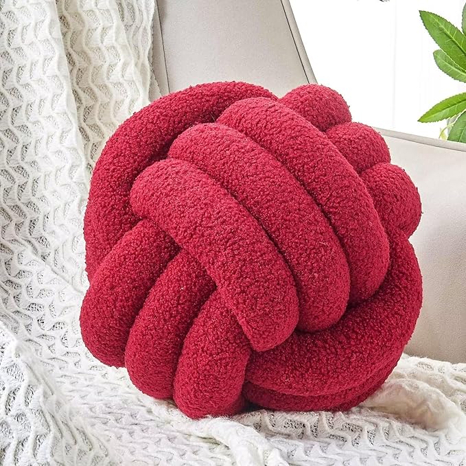 Uvvyui Knot Pillow Ball, Soft Home Decorative Pillows, Round Throw Pillow, Handmade Knotted Plush Pillow, Round Boucle Pillow Cushion (14 Inches Burgundy)