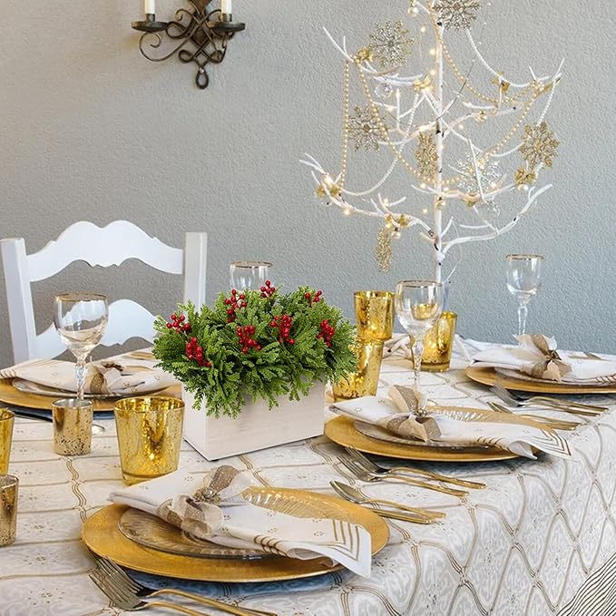 - Tabletop Christmas Plant: This verdant centerpiece decorates your dining table or sideboard with a flourish. Cedar leaves mixed with shiny red berries artfully arranged in a natural wooden box, add traditional holiday color and cheer to your home. The exquisite design makes this mini Christmas centerpiece become a perfect table decorations choice as well as a perfect gift