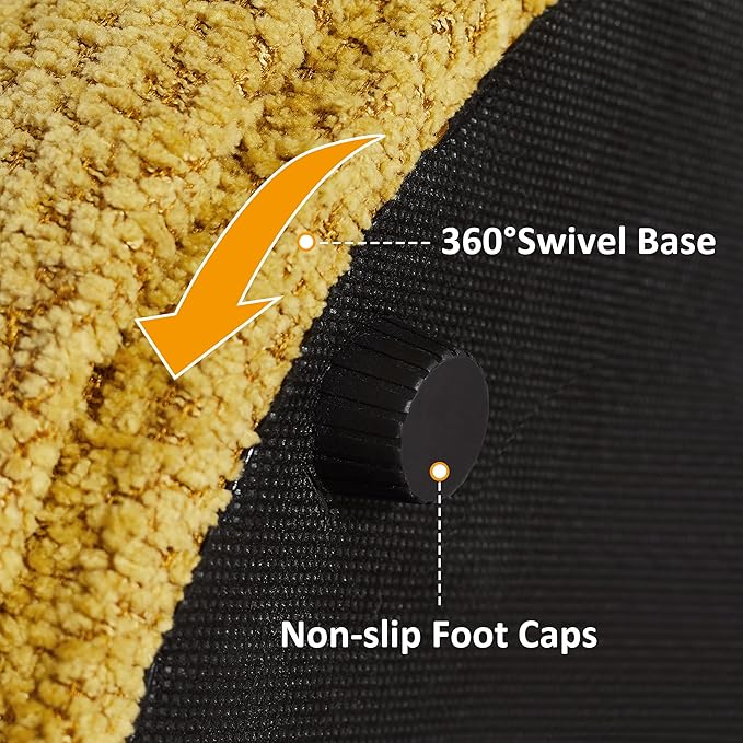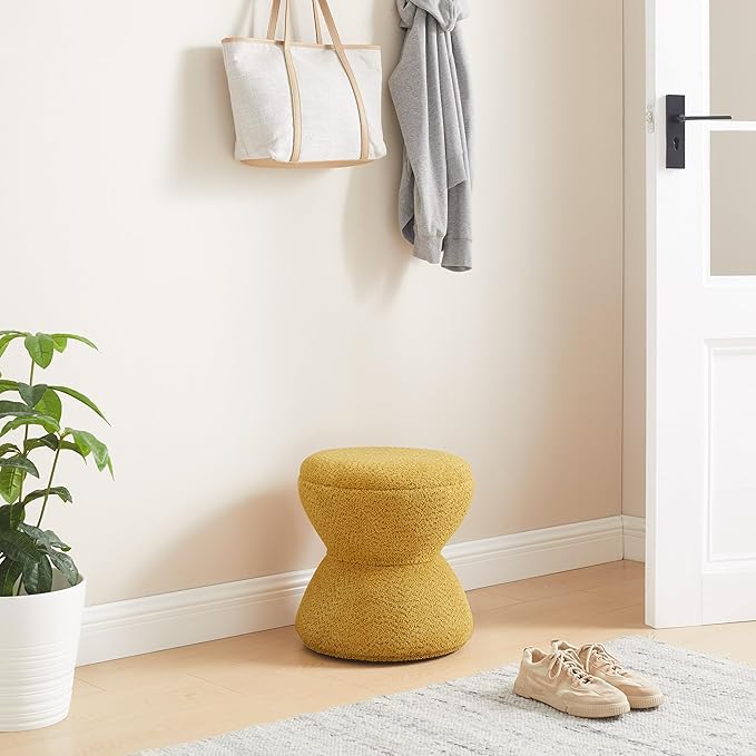 Multi-Functional Boucle Ottoman, Vanity Stool Chair, Sturdy Rotating Wooden Footstool, Suitable for Living Room, Bedroom, and Entryway, Without Installation, Swivel, Yellow