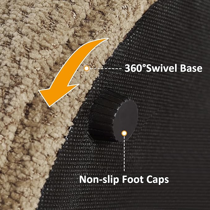 VANOMi Multi-Functional Boucle Ottoman, Vanity Stool Chair, Sturdy Rotating Wooden Footstool, Suitable for Living Room, Bedroom, and Entryway, Without Installation, Swivel, Camel