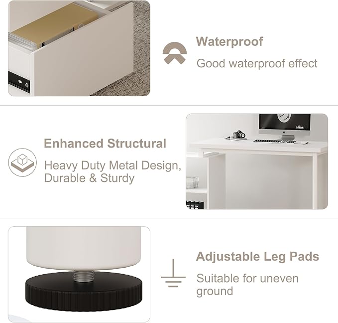 - High Stability & Super Sturdy: The gaming computer desk is made of high-quality MDF board, which is scratch-resistant and waterproof. The office desk with drawer is constructed by a high-quality metal frame, which is durable and stable. Adjustable leg pads keep the computer desk sturdy even on uneven floors without wobble.
