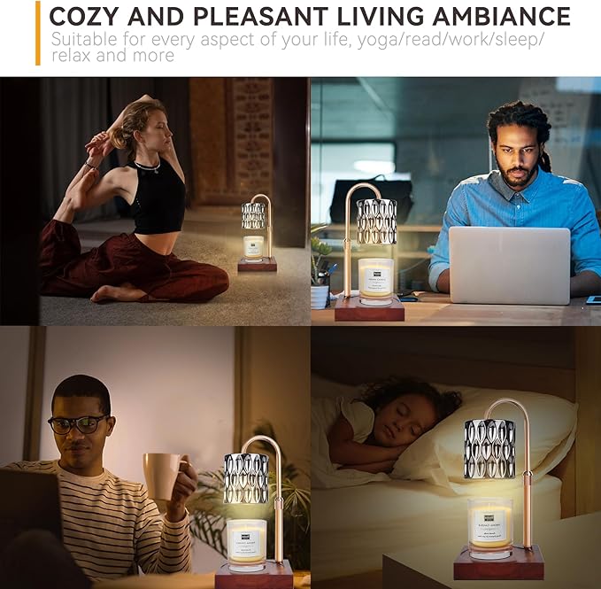 - [Timing and Dimming Function]: The candle warmer lamp has 4 levels of adjustable height temperature, allowing you to create the perfect ambiance and desired melting speed. The candle lamp warmer can be set to automatically shut off after 2, 4, or 8 hours. Enjoy safe and reliable use with this product.