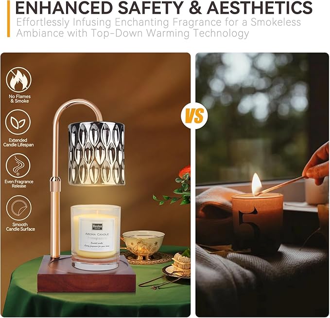 - [Adjustable Height, Fits All Candle Sizes]: The candle lamp warmer comes with a 5.5-inch wooden base and the height-adjustable lamp pole, allowing compatibility with candles of all sizes.