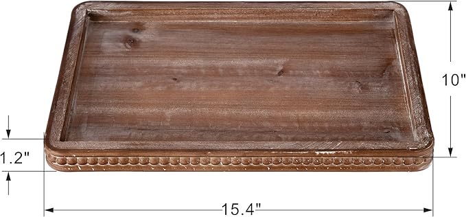 15.4" Rectangular Farmhouse Wooden Beaded Decorative Tray for Coffee Table, Rustic Wooden Trays for Kitchen Counter, Vintage Centerpiece As Candle Holder and Organizer (Wood, 15.4"x10")
