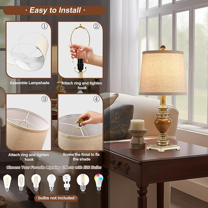 - 【Consumer Notice】: This traditional table lamps shade requires simple assembly, which makes the product packaging very light. This design not only reduces the waste of packaging materials and transportation energy consumption, but also reduces the delivery burden on workers. The overall height of the desk lamp is 21 inches. Please make sure these dimensions are suitable for your space
