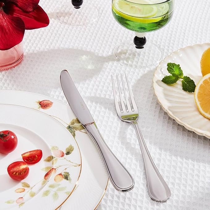 - 18/10 Finest material:The silverware is made of the highest quality 18/10 stainless steel, which has strong anti-corrosion and rust resistance compared to other materials. The solid structure of this material makes the flatware durable and will never bend, providing you with long-lasting service and beauty. Plus, its larger than average size gives it a more substantial feel in your hand