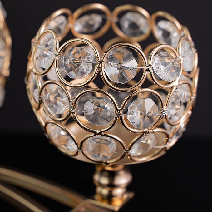 - ❤ HIGH QUALITY MATERIAL:gold candelabra centerpiece,Each shinning candle holder bowls are made of selected high quality octagonal K9 crystal beads,sparking and shinning makes it gorgeous and a sense of dignity with natural freshness.Very strong production process strengthen of anti-corrosion and rust prevention & durability.