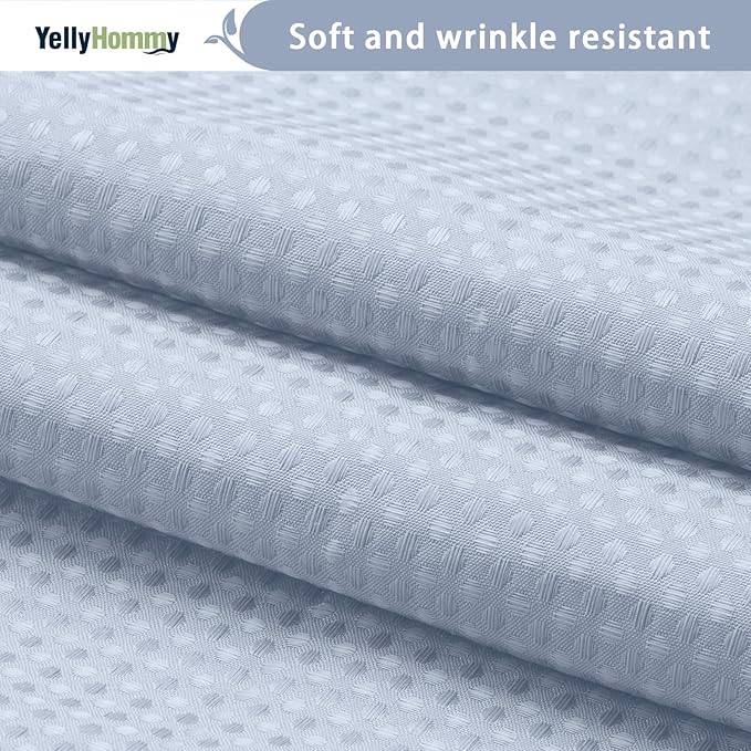 YellyHommy No Hook Shower Curtain with Snap in Liner Set Less Time Waffle Shower Curtain for Bathroom 75" L x 72" W Mist Blue