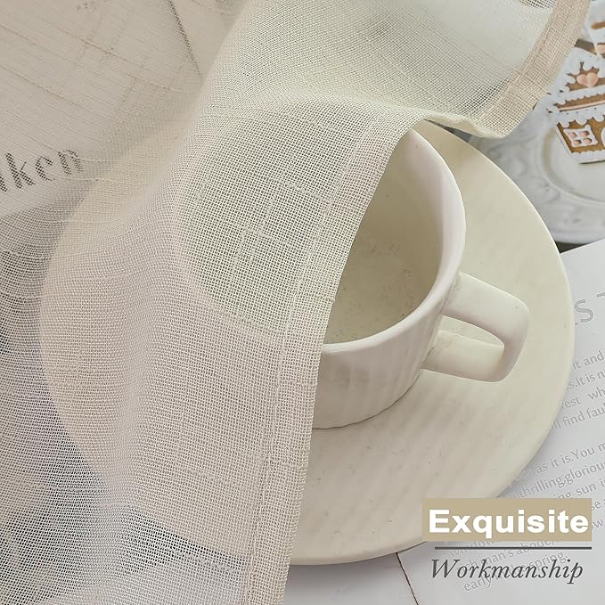 Aiyufeng Kirei Farmhouse Sheer Curtains Flax Textured for Living Room, Semi Sheer Vertical Drapes Privacy with Light Filter for Home Office/Farm House, W40 x L72, Linen, 1 Pair