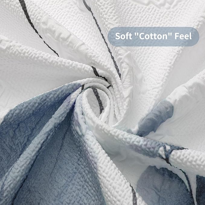 - 【PREMIUM QUALITY】Made of expertly chosen 100% polyester fabric, our cloth shower curtain is skin-friendly, wrinkle free, and drapes beautifully. Double layers construction makes the embossed texture last for a long time and provides maximum protection for your privacy. Measures 72" wide x 84" tall, the standard size fits most bathtubs and shower stalls. QIYI soft “cotton” feel shower curtain set comes with 12 c-type hooks for easy installation.