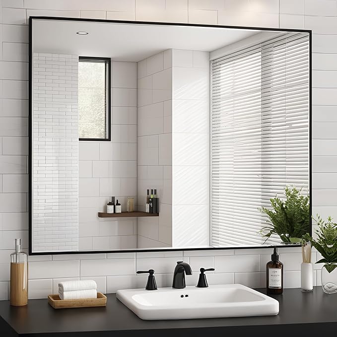 - MODERN BATHROOM MIRROR: The DH Wall Mirrors 30x40 designed in rectangluar,Simple and classic black metal framed mirrors can match with any decoration style. It's perfer for bathroom, Entray, washroom, bedroom, derssing