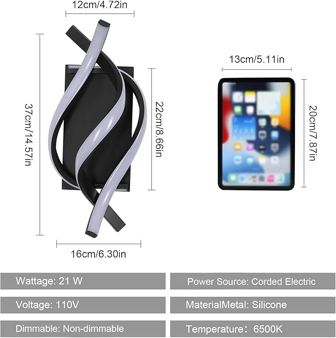 - Sleek Spiral Design & Modern Aesthetics: Our black light fixture features a unique spiral streamline design that adds a touch of modern elegance to any room. Crafted from durable aluminum and iron, this wall lamp boasts a sophisticated black finish that complements contemporary interiors, making it a standout wall sconce light for your living space.