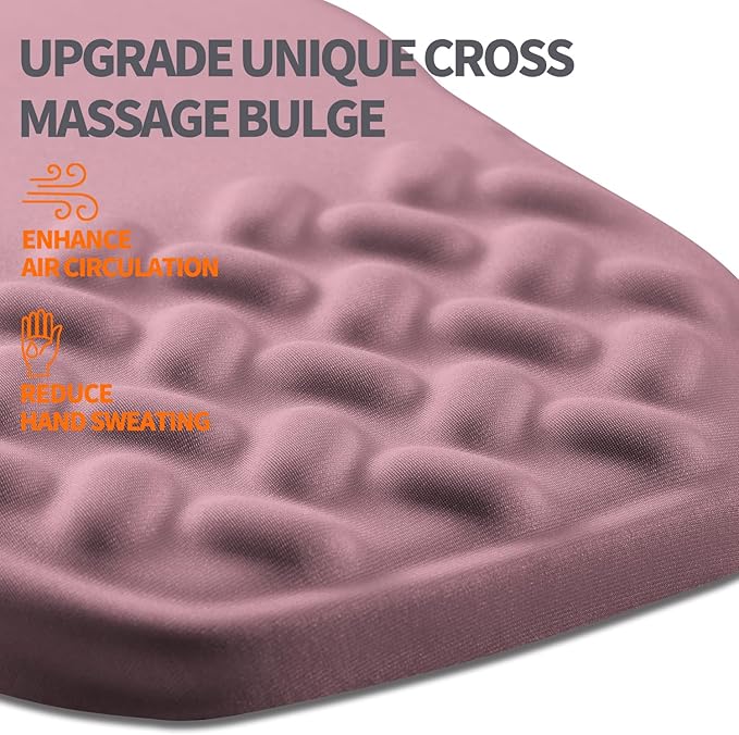 Ergonomic Slope Mouse Pad Wrist Support, Wrist Rest Mousepad for Carpal Tunnel Pain Relief with Massage Bulge and Slow Rebound Memory Foam (12x8 inch, Dark Pink)