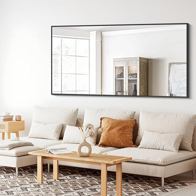 BONEWEI Bathroom Mirror, 30x55 inch Wall Mirror for Bathroom Wall Mounted Black Rectangle Square Corner Mirrors, Black Bathroom Mirror for Living Room, Farmhouse, Bedroom Entryway, Horizontal/Vertical