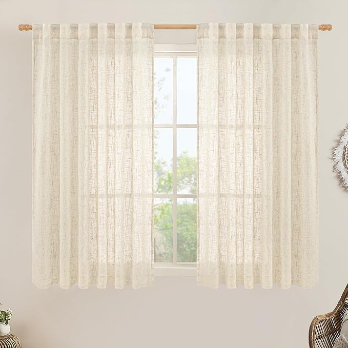 LAMIT Beige Linen Curtains 45 Inches Long for Bedroom, Light Filtering Panels Back Tab and Rod Pocket Neutral Drapes for Kitchen/Window/Loft Room, 52 x 45 Inch, 2 Panels