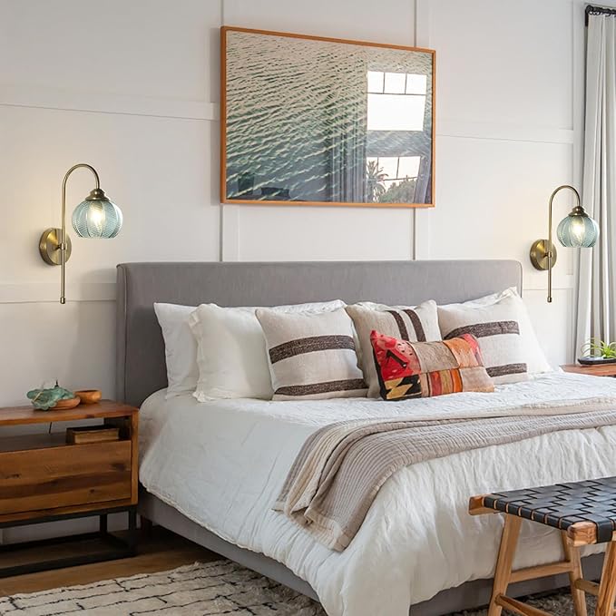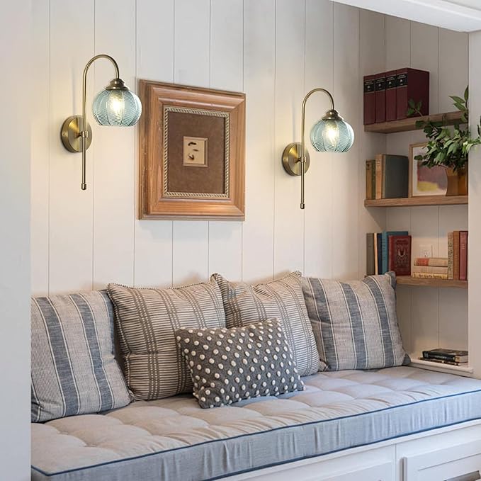 - Ribbed Glass Shade with Green Tone: The vintage wall light fixture for bathroom using classic green glass material, this color not only creates a nostalgic and retro atmosphere, but also brings a touch of vitality and energy to the indoor space. Green glass emits soft and warm light under the reflection of light, making people feel a sense of peace and comfort. Unique arc design has an artistic beauty and enhance different furnishing styles