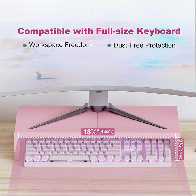 TEAMIX Pink Monitor Riser-20L inch, Wood Monitor Stand for Desk, Sturdy TV/Screen/PC/Printer/Laptop Riser,Computer Shelf with Storage TV Holder for Home Office (Pink, 20 inch)
